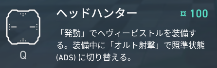 2つ目はQキースキルであるヘッドハンターの解説をしていきます。