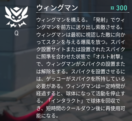 2つ目はQキーのスキルであるウィングマンについて解説していきます。