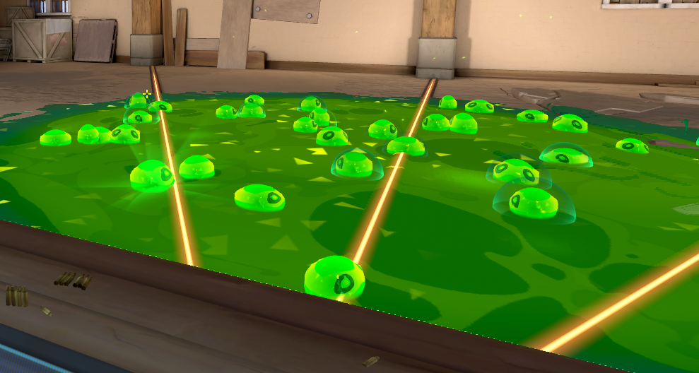 真ん中の黄緑色の部分は爆発した際に50×3のダメージが入ります。