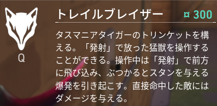 2つ目のスキルはQキーのトレイルブレイザーです。