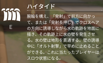 3つ目はEキースキルであるハイタイドについて解説していきます。