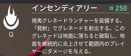2つ目はQキースキルであるインセンディアリーの解説をしていきます。