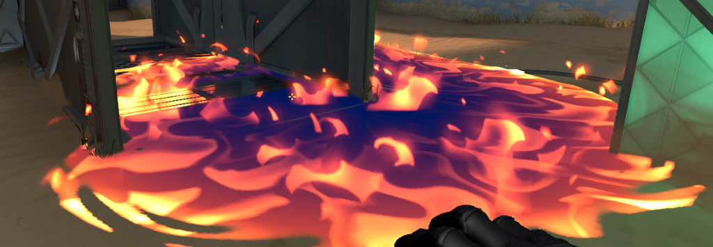 着弾するとこのように炎が展開され、高ダメージを一瞬で与えることが出来ます。