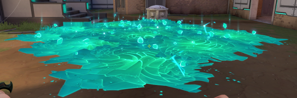 破裂すると画像のように氷のフィールドを作り出し、この中にいるキャラへスロウを与えます。
