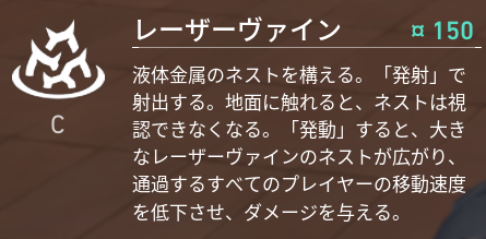 1つ目はCキースキルであるレーザーヴァインの解説をしていきます。