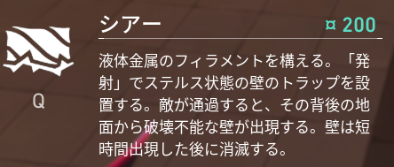 シアーは壁に対して設置することができ、ステルス状態のトラップとなっています。