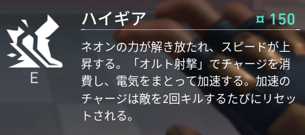 では合わせて、Eキーのスキルであるハイギアから見ていきましょう。