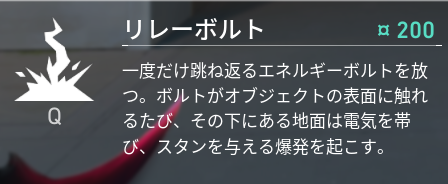 続いてはQキーのスキルであるリレーボルトについて解説致します。