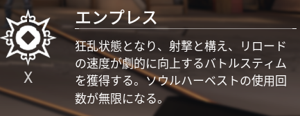エンプレスは発動すると射撃速度、銃を構える速度、リロードの速度が速くなります。