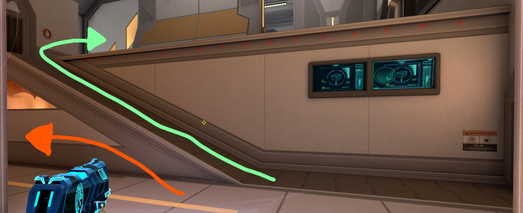 攻めの場合は、リスポーン地点を回るか、緑箱から飛び移る、Aサイト上から飛び移ることで可能です。