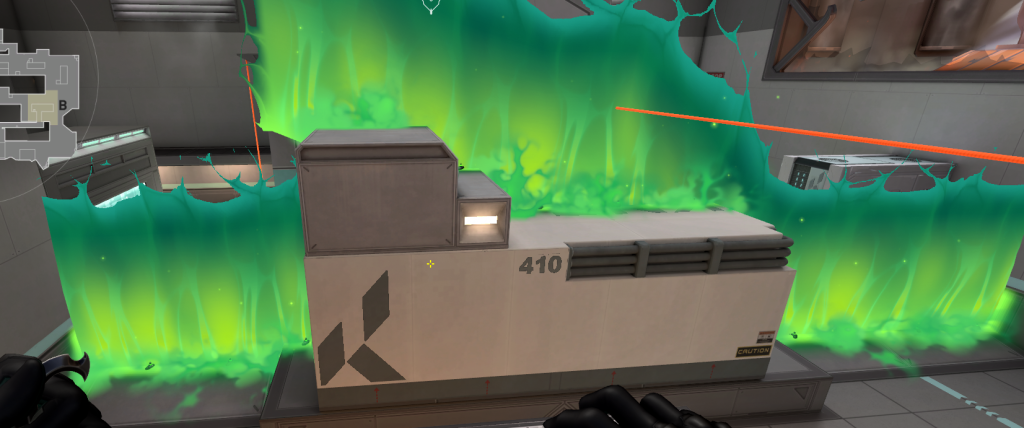 この位置は攻め側のデフォルト設置でよく使用する場所なのでスモークで衰弱になるのは強力です。