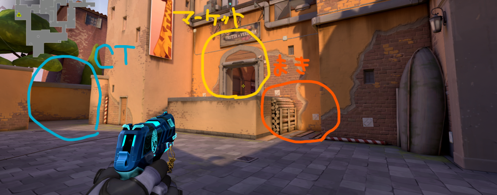 仲間が中央エリアからマーケットへ侵入できそうな場合はスモークを中央に使用してあげて