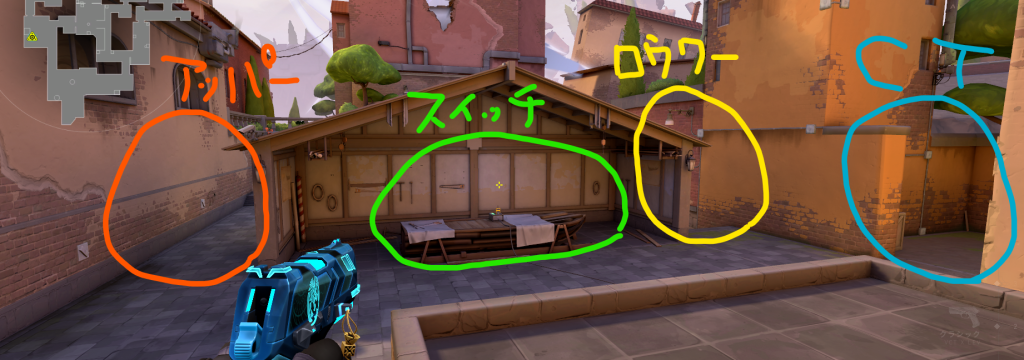 続いてはアセントのBサイト定番のスパイク設置場所について紹介していきます。