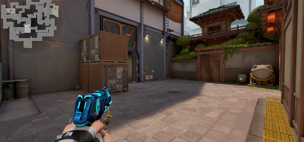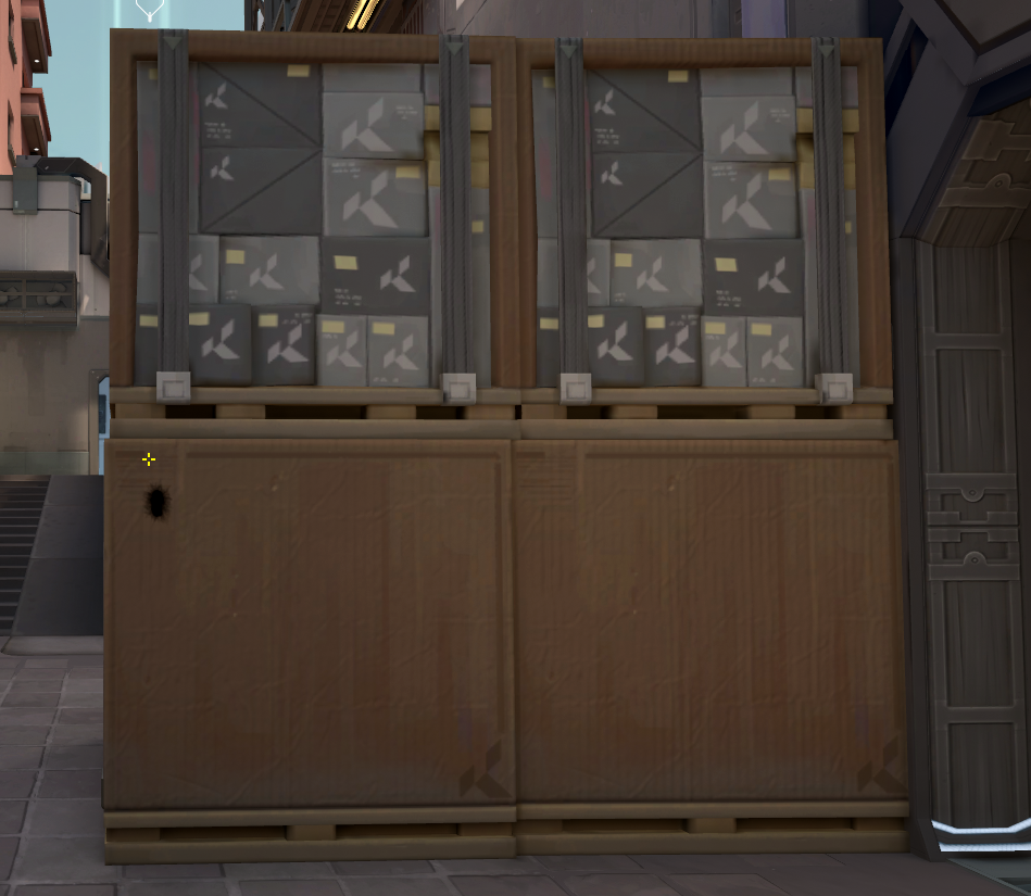 左のグレーの箱裏に隠れて敵を待ち構えることもでき、合計3方向から待ち構えることが出来ます。