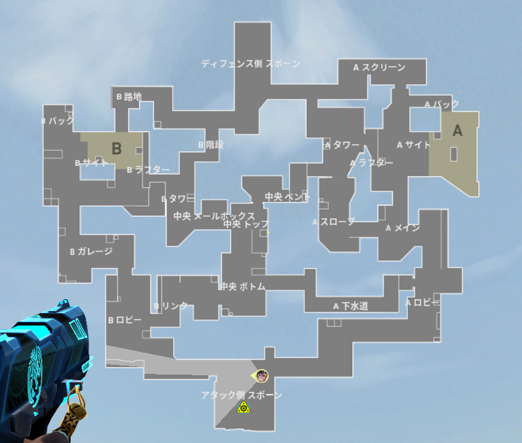 それではAサイトの中をざっくり見れたところでスパイクの設置可能場所を見ていきましょう。