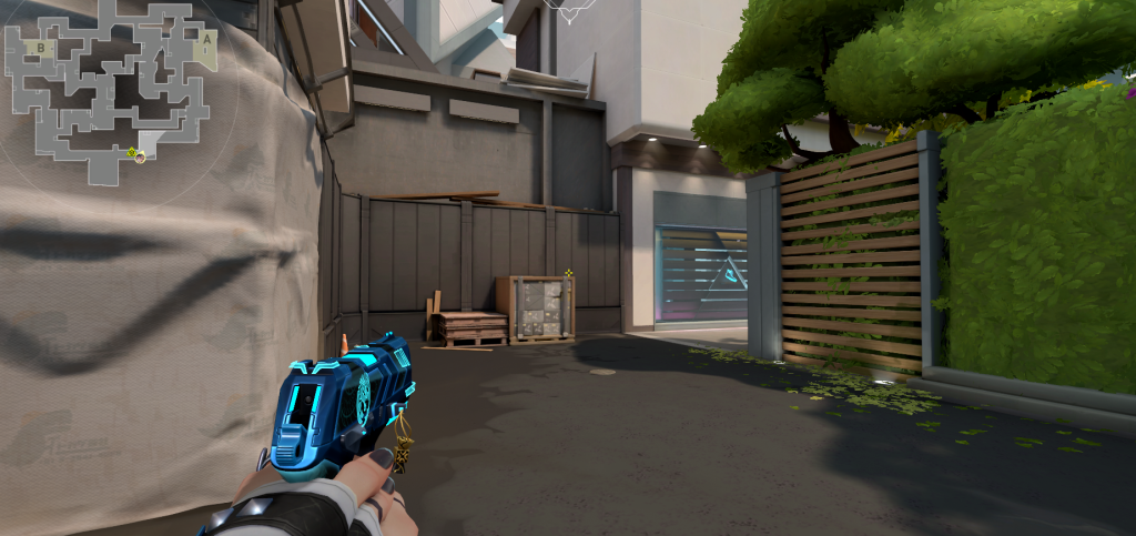 これでAサイトの中に隠れている敵以外は射線が通しにくくなっています。