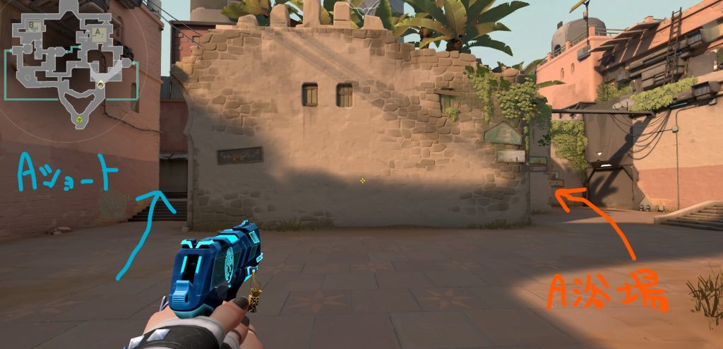 Aショートはワンウェイのあとに通常のスモークを使用するなどして守るのが定番です。