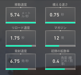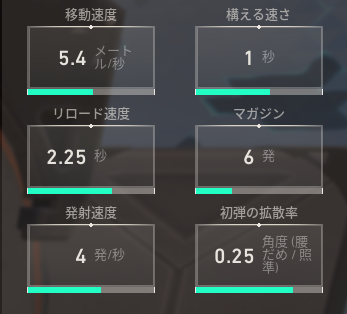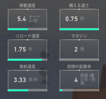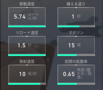 構える速さはMAXですが、マガジンと拡散率がとても低いですね。