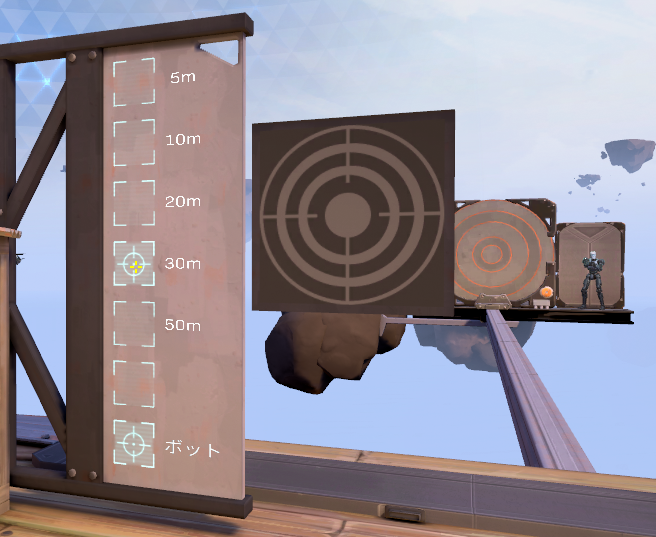射撃場のBOTや的で距離は確認が出来ますので、こちらも感覚を掴んでおきましょう。