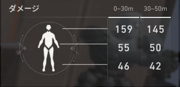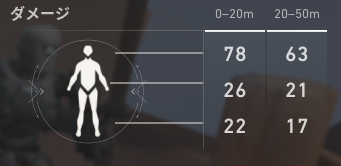 0~30mで頭105、胴体30、足25ダメージと頭がかなり高いですね。