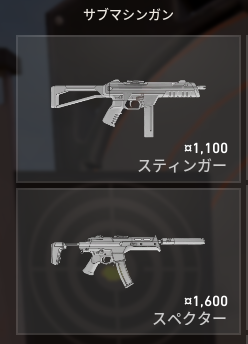 サブマシンガンは、2つありスティンガーとスペクターとなっています。