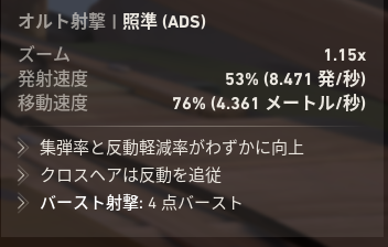 ただし、ADS状態で射撃すると4点バーストになってしまいます。