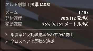 発射速度と移動速度が少し落ちてしまいますが、反動軽減があり使いやすいです。