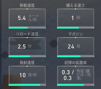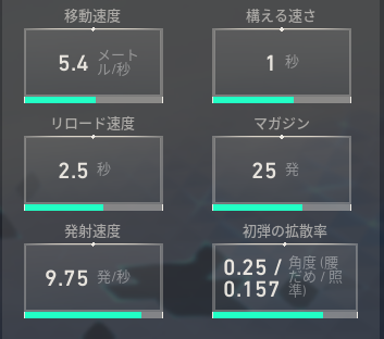 発射速度と初弾の拡散率が非常に優秀な武器になっていますね。