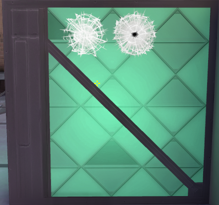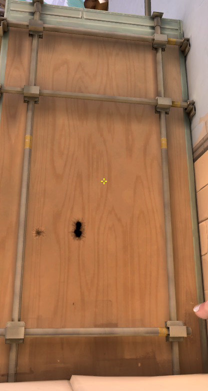 同じ壁でも斜めから射撃してしまうと、画像にある赤い点のような弾痕になり、壁を貫通してません。