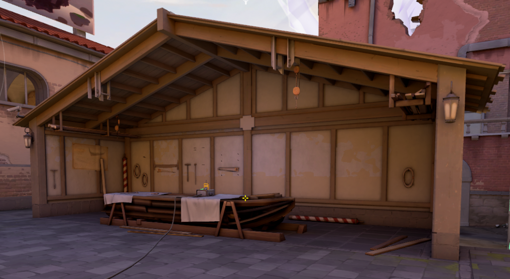 なんと、この小屋はどこからでもどの武器でも壁抜きが可能になっています。